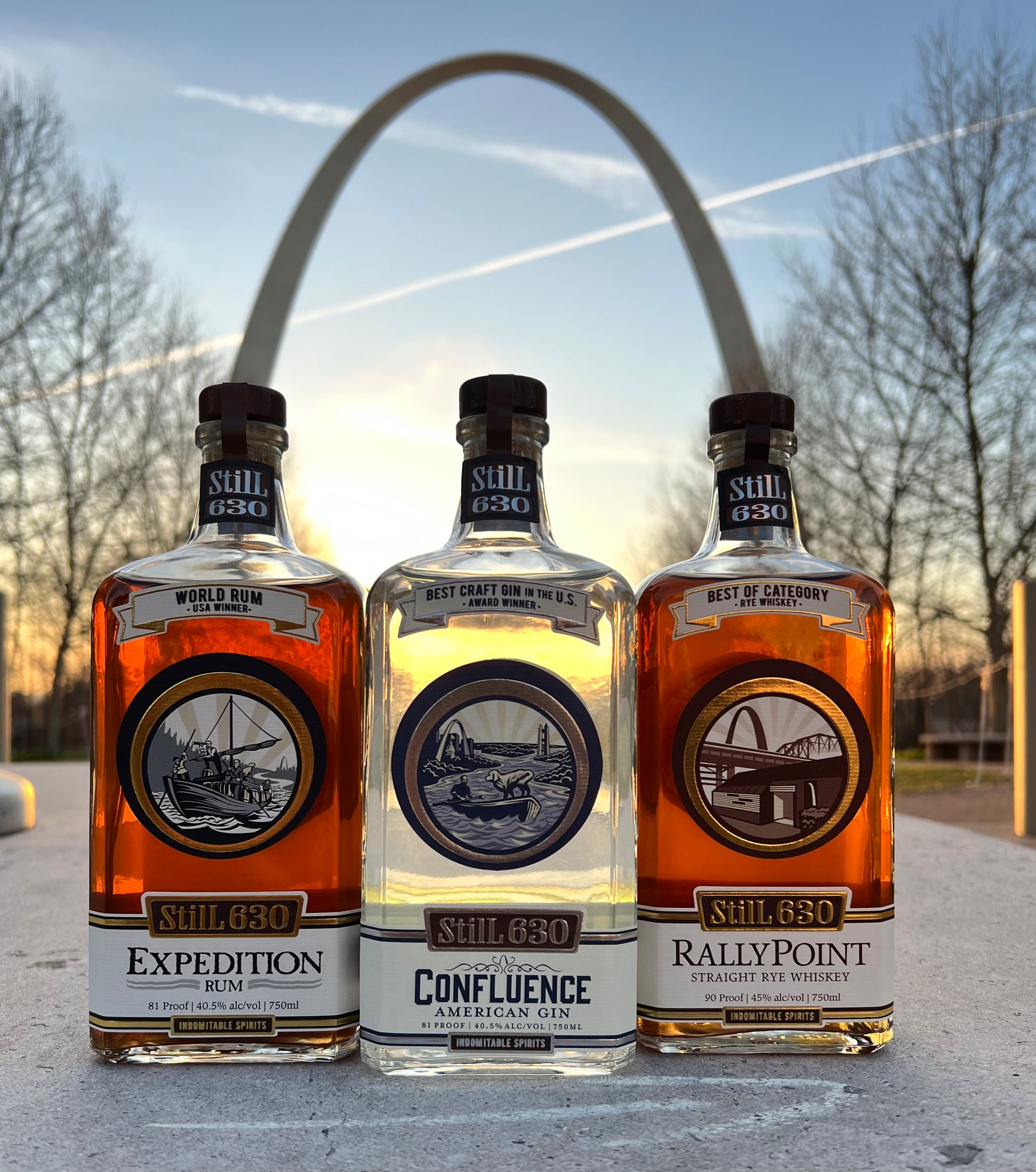 Get the perfect taste of St. Louis! This exceptional bundle includes the three flagship spirits from Missouri's most awarded distillery: StilL 630. You will enjoy a bottle of RallyPoint Straight Rye Whiskey, Confluence American Gin, and Expedition Rum. Perfect for a riverboat cruise down the Mississippi or the comfort of your home. A fantastic gift for any spirit lover!